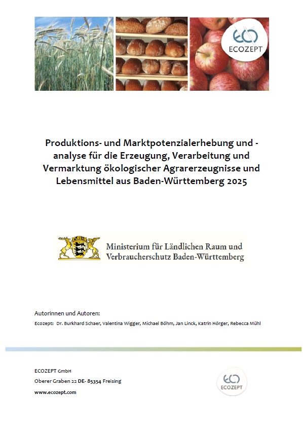 Endbericht der Produktions- und Marktpotenzialerhebung und -analyse für die Erzeugung, Verarbeitung und Vermarktung ökologischer Agrarerzeugnisse und Lebensmittel aus Baden-Württemberg 2025 Mit dieser Studie liegen aktuelle Daten zur Bio-Erzeugung und zur Nachfrage nach Bio-Lebensmitteln vor, unter anderem im Bereich der Außer-Haus-Verpflegung. Die Aussichten für Wertschöpfung aus heimischen Bio-Lebensmitteln werden neu bewertet. Die Studie schlägt außerdem praxisnahe Handlungsempfehlungen für Politik und Wirtschaft vor, um die ökologische Agrar- und Ernährungswirtschaft in Baden-Württemberg weiter voranzubringen.