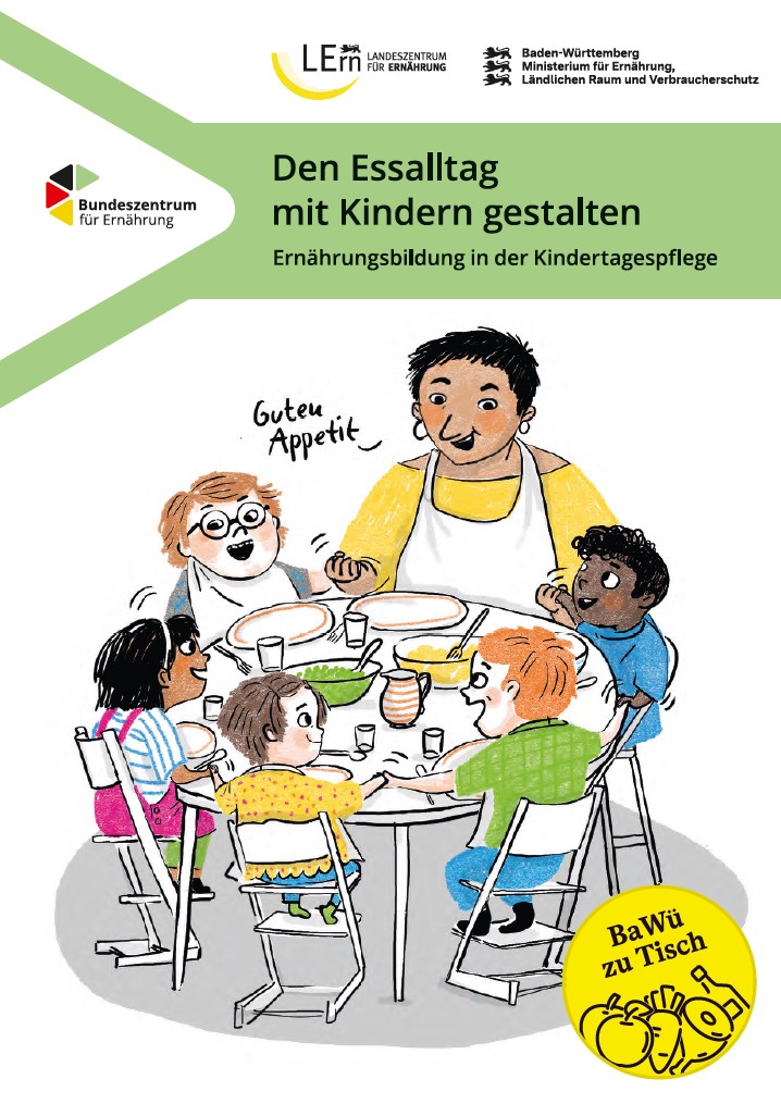 Die Broschüre „Den Essalltag mit Kindern gestalten“ vermittelt Kindertagespflegepersonen praxisnahe Anregungen, um Ernährungsbildung im Betreuungsalltag sichtbar und erlebbar zu machen. Hervorgehoben werden besonders die gemeinsamen Mahlzeiten, das pädagogische Kochen und der vielfältige Alltag. Anlässe zur (Selbst-)Reflexion finden sich in drei ausgewählten Lernsituationen aus dem Betreuungsalltag.