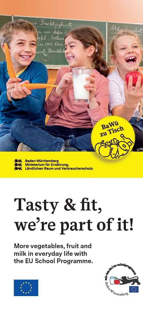 Mit dem EU-Schulprogramm lernen Kinder in Grundschulen und Kitas spielerisch und erlebbar vieles über Obst, Gemüse, Milch und Milchprodukte von regionalen Lieferanten. Der Flyer informiert über das Programm und gibt Eltern Tipps für mehr Gemüse, Obst und Milch im Alltag. Informationen auf Englisch
