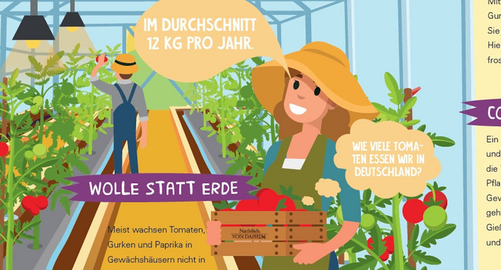 Der Landwirtschaftskalender zeigt die Vielfalt der Landwirtschaft auf und stellt einzelne Aspekte kindgerecht aufgearbeitet und am Jahreslauf orientiert dar. Im Fokus stehen dabei der Anbau und die Ernte von Nutzpflanzen, deren Vermarktung und die Tierhaltung. Die digitalen Begleithefte bieten weitere Hintergrund- und Zusatzinformationen zu den monatlich behandelten Themen, enthalten zahlreiche Arbeitsblätter und liefern Ideen für Aktivitäten im Unterricht. Im Juli geht es um die Vielfalt der Gemüsearten. Die Kinder erfahren, wie Gemüse im Freiland und im Gewächshaus angebaut wird. Der Freilandanbau wird am Beispiel Kopfsalat und Möhren vorgestellt. Für den geschützten Anbau im Gewächshaus wurden Tomaten ausgewählt. Die Schülerinnen und Schüler lernen, wie sich der Anbau von biologischem und konventionellem Gemüseanbau unterscheidet.