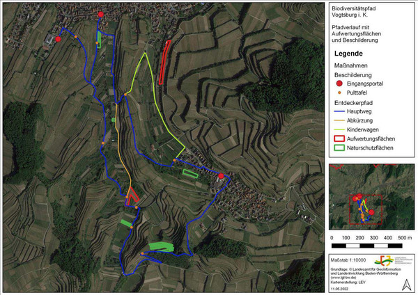 Der Einstieg in den Pfad ist von drei verschiedenen Parkplätzen sowohl in Oberrotweil als auch in Bickensohl möglich. Im Zuge der Einrichtung des Pfades wurde eine artenreiche Mähwiese neu angelegt und Nistkästen aufgehängt. Im Winter 2022/23 wird eine Gehölzpflegemaßnahme durchgeführt. In Bickensohl kommt man unmittelbar am Gasthaus Rebstock vorbei, das zur Rast einlädt.